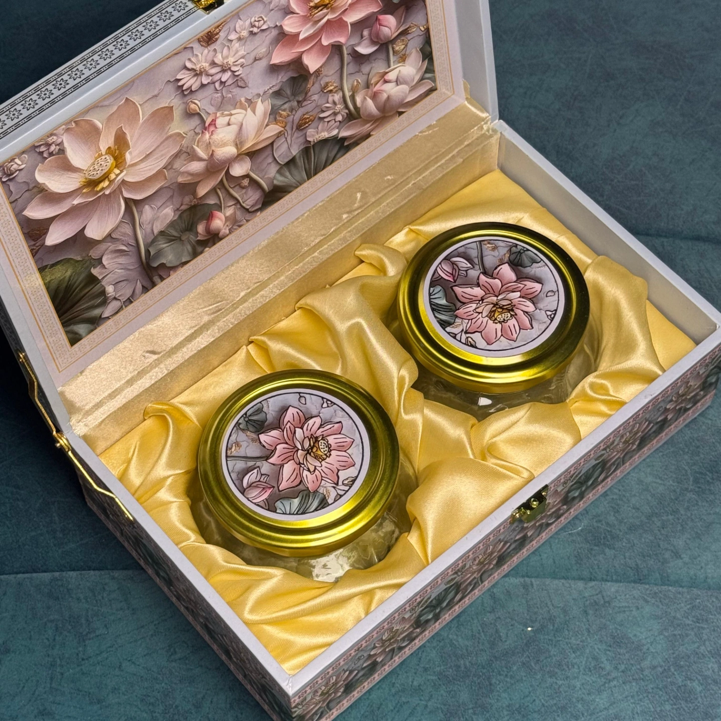 Premium luxury gift boxes with elegant, festive-inspired prints