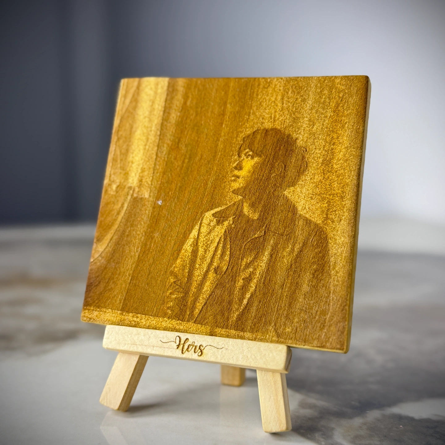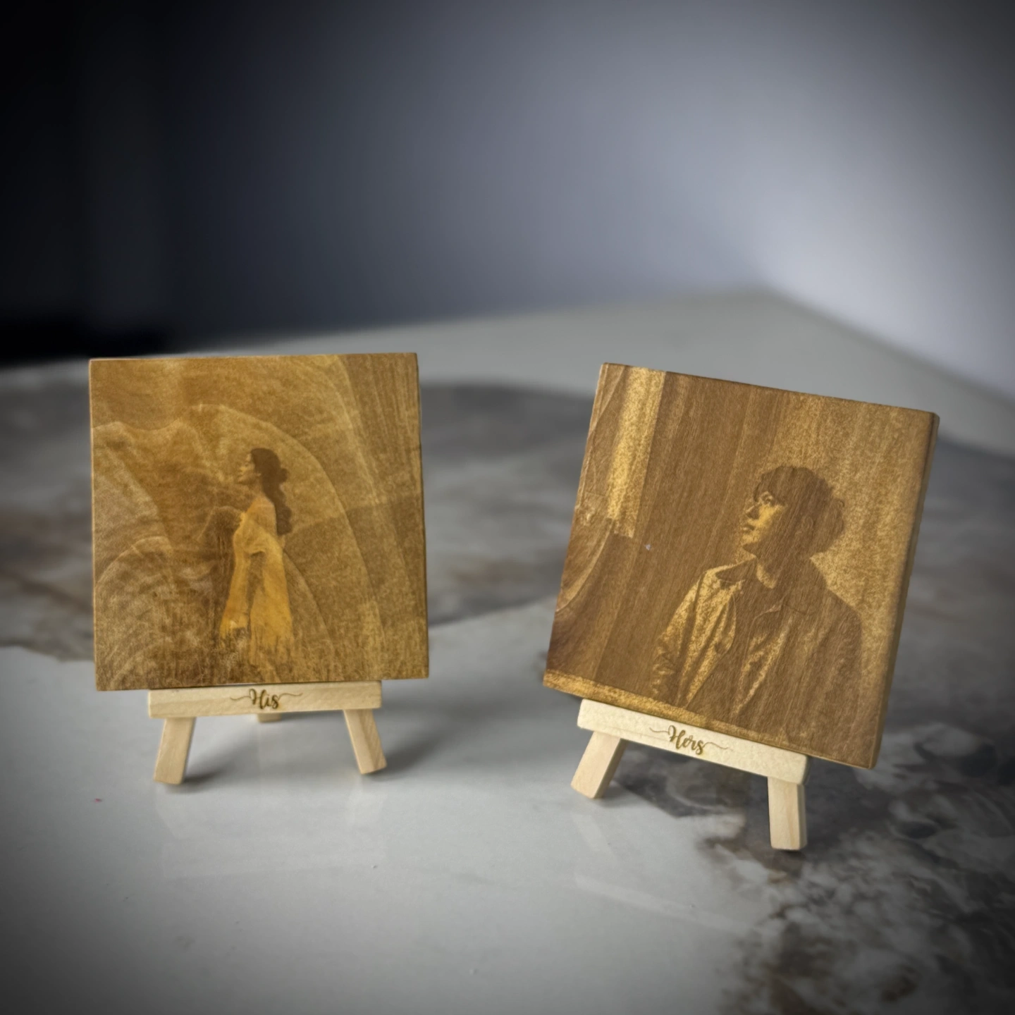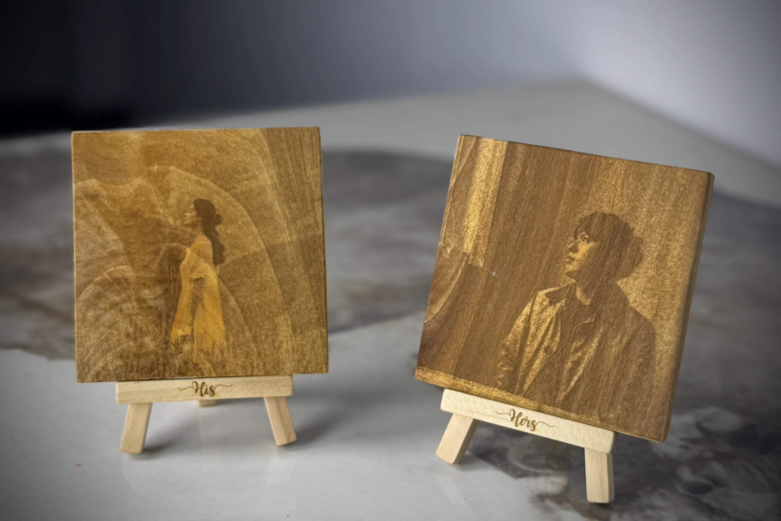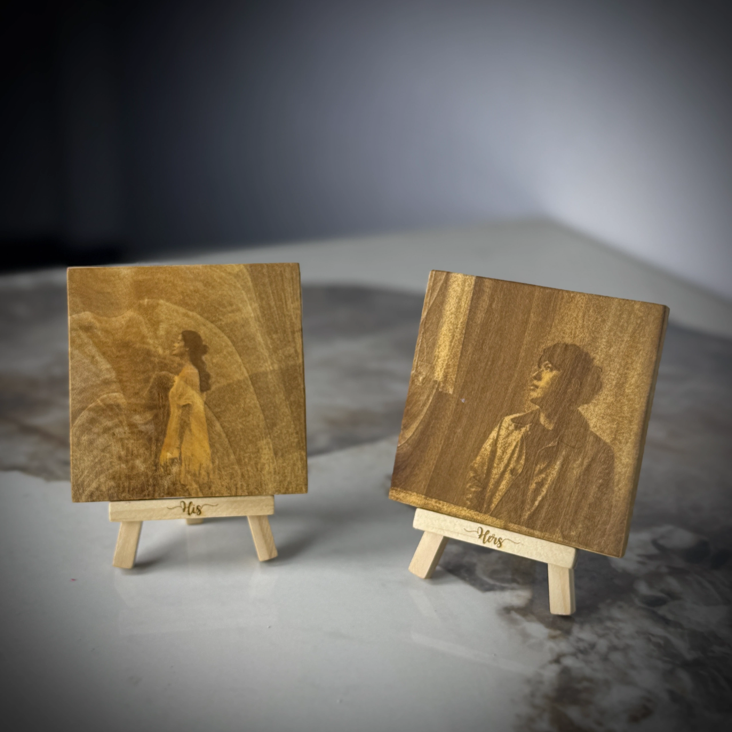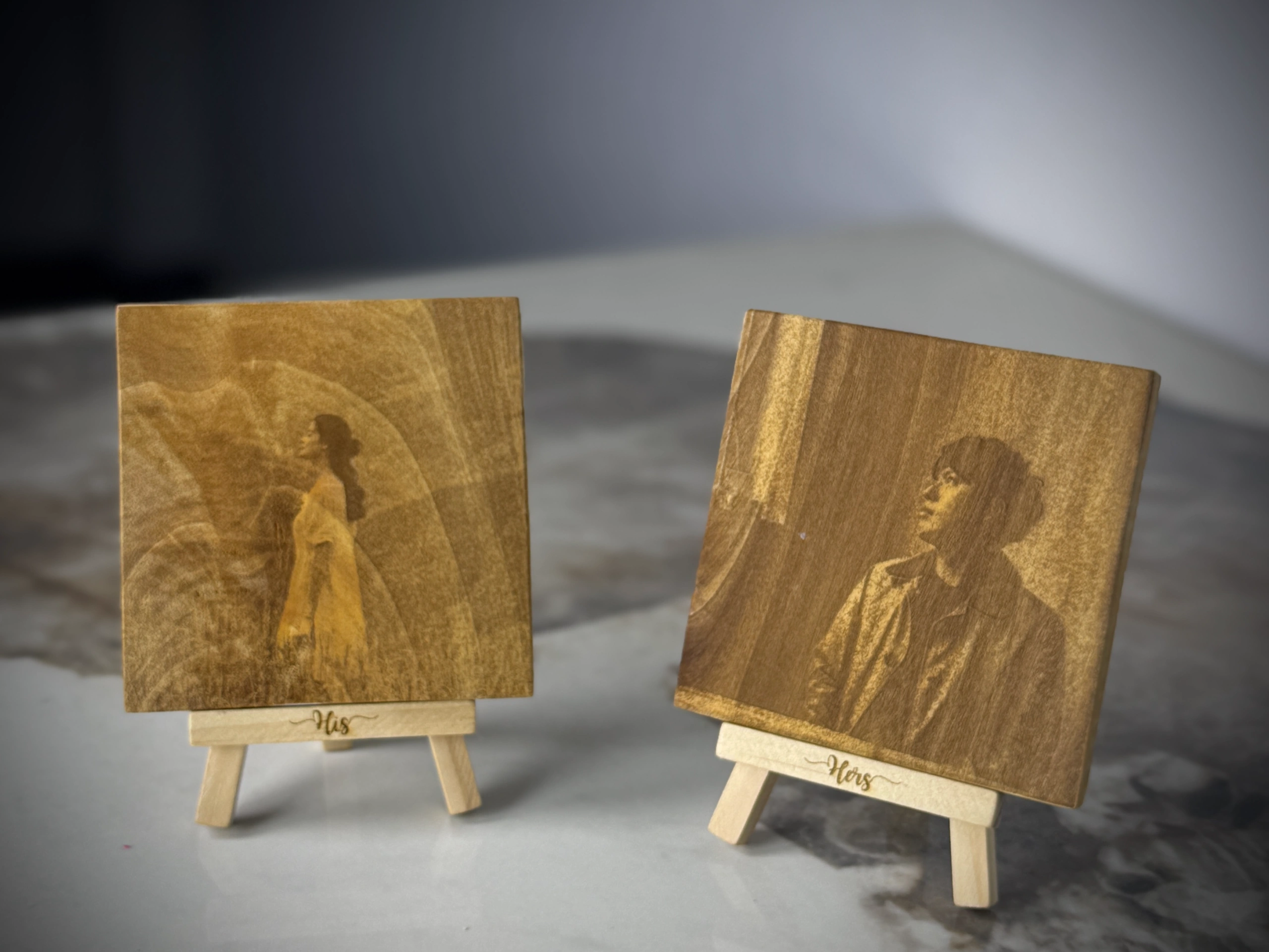 Wooden Portrait Easels are small wooden photo frames with your picture laser engraved on them. They come with a mini stand and can be customized with your partner’s name. Available in three sizes: Small, Medium, and Large. A perfect personalized gift and decor piece.