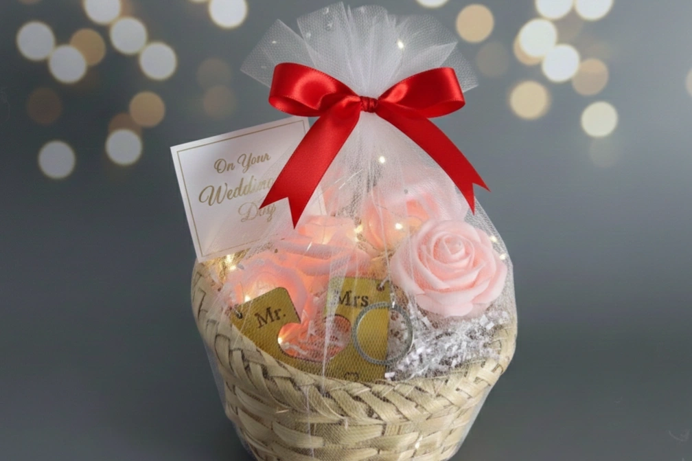Create a one-of-a-kind wedding gift by selecting from our curated collection of candles, photo frames, fairy lights, and personalized keepsakes. Add names, wedding dates, or heartfelt messages — and we’ll wrap it beautifully, ready to impress.