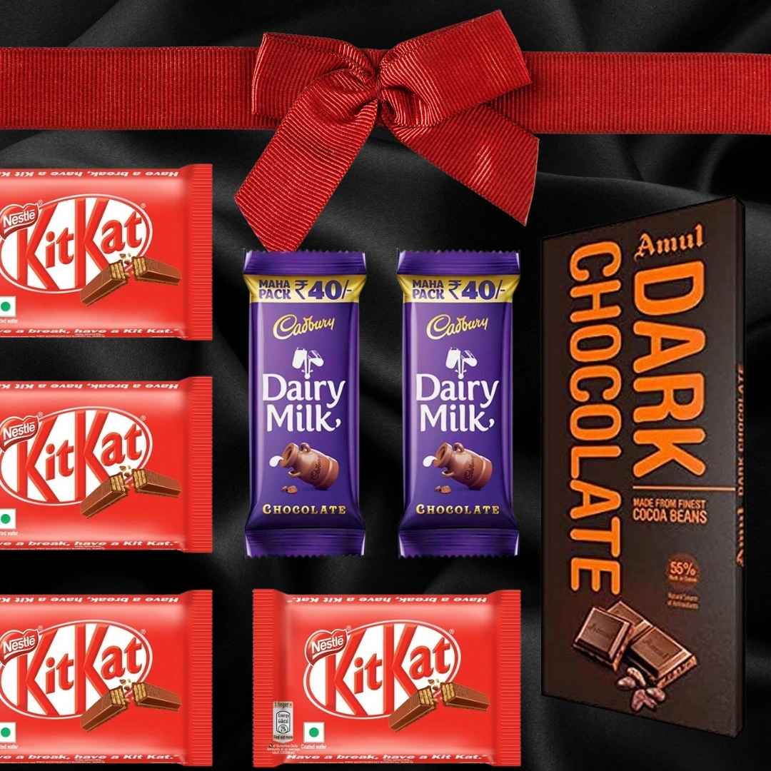 Deluxe Chocolate Bundle: 4 KitKats, 2 Dairy Milks and 1 Amul Dark Chocolate 125gm