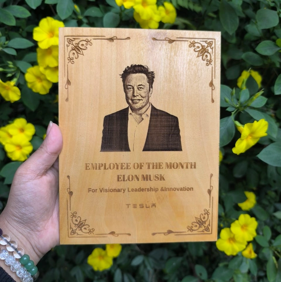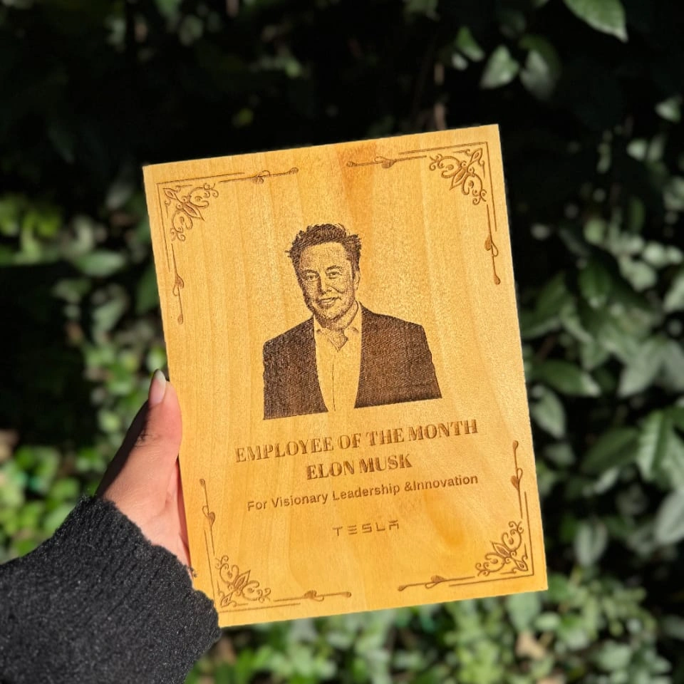 Detailed Laser Engraving: Utilizes precise laser technology to engrave a detailed portrait/logo, text, and decorative borders, ensuring clarity and permanence.