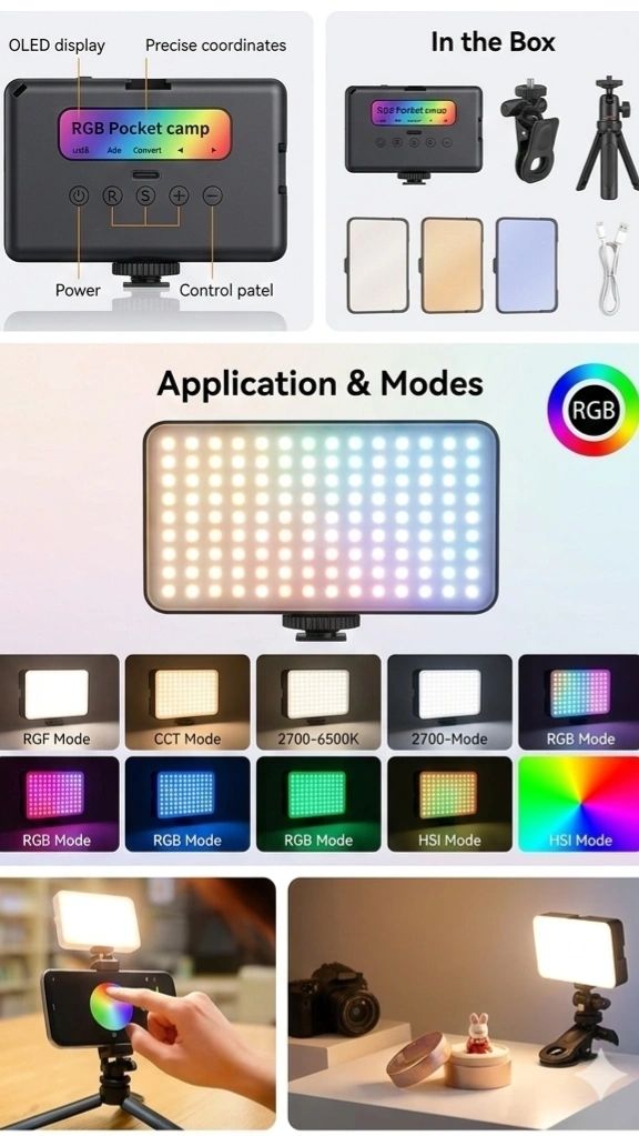 From "Cinematic Blue" to "Golden Hour Glow," the Pocket Camp Pro gives you total creative agency over your environment. It’s the ultimate tool for influencers, photographers, and remote professionals who need reliable, high-quality lighting on the go