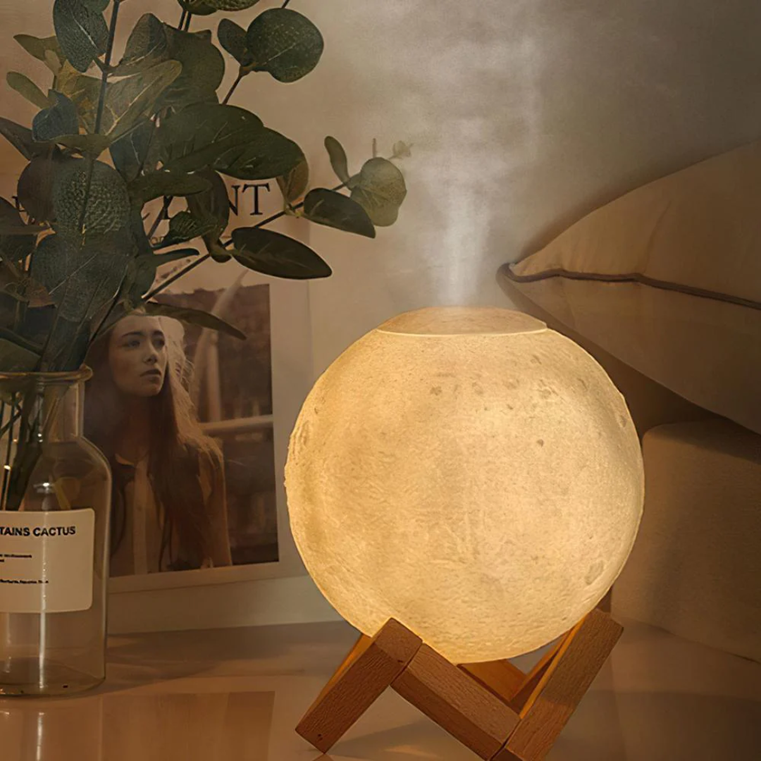Plugs into any USB power source including portable phone chargers, puts moisture back into dry air from over-heating or cooling.