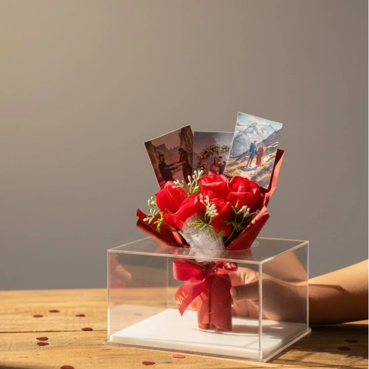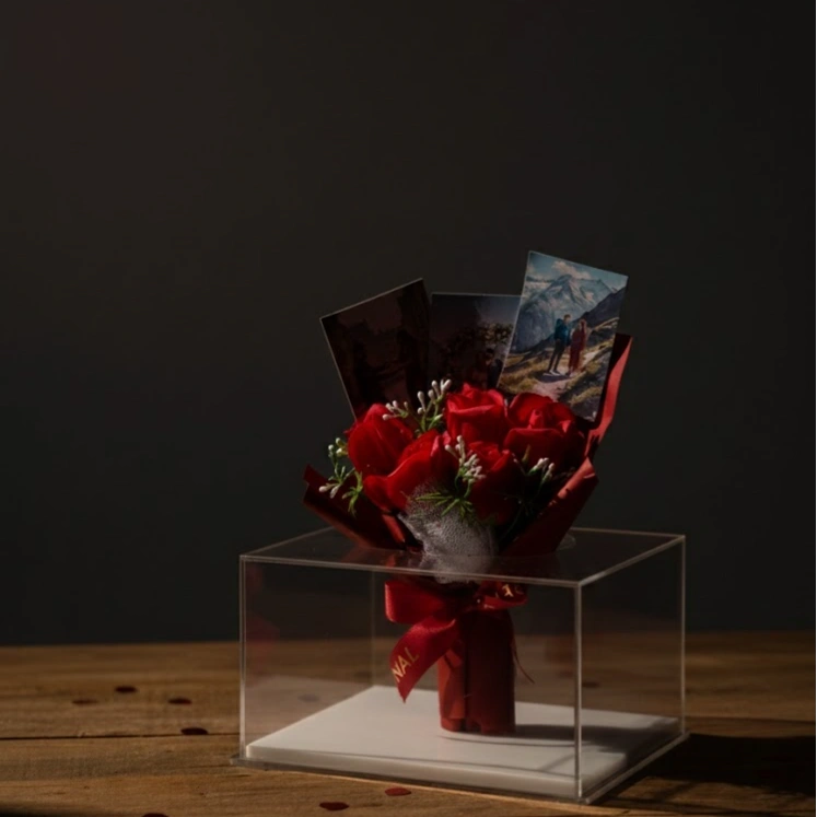 Personalized Storytelling: Features three custom photo slots nestled within the bouquet, allowing you to showcase your favorite memories together.